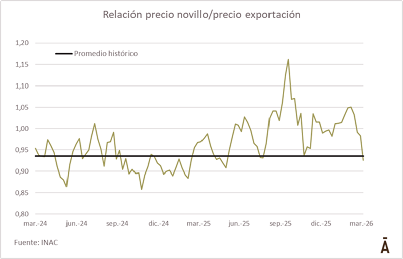 Relación del precio hacienda/exportación bajó al promedio histórico