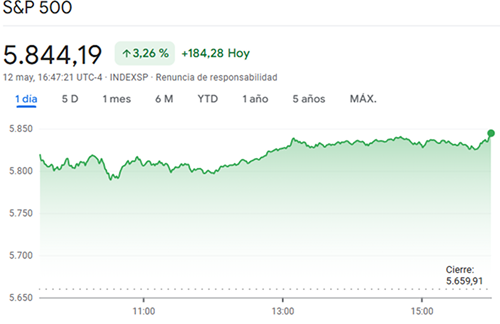 Las acciones estadounidenses subieron para cerrar cerca de los máximos de la sesión este lunes después de que un acuerdo entre Estados Unidos y China para reducir temporalmente los aranceles recíprocos ofreciera alivio a los mercados preocupados por una guerra comercial. El S&P 500 se disparó casi un 3,3%, alcanzando su nivel más alto desde el 3 de marzo. El Promedio Industrial Dow Jones avanzó un 2,8%, o más de 1.100 puntos, reportó Yahoo! Finance. El Nasdaq Composite, con un fuerte componente tecnológico, lideró las ganancias, disparándose un 4,3%.
