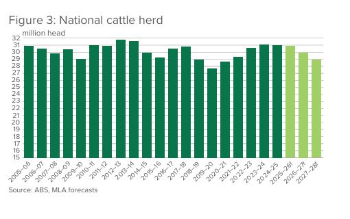 El rodeo bovino de Australia se ubicaría en torno a 30,8 millones de cabezas al 30 de junio de 2026, con una leve caída interanual de 1%, aunque todavía en niveles históricamente altos. Según proyecciones de MLA, la oferta seguirá elevada en el corto plazo, con mayor faena y producción, en un contexto de sólida demanda externa.