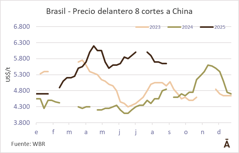 Los pocos negocios por delantero que se pactaron se hicieron sobre un eje de US$/t 5.600-5.700 CFR, un valor que convalidan aquellas plantas que tienen necesidad de vender para descomprimir sus stocks.