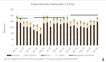 El volumen de carne vacuna que se embarcó a China en setiembre se estima en unas 250 mil toneladas, unas 30 mil toneladas más que en agosto y el mayor volumen mensual desde diciembre.