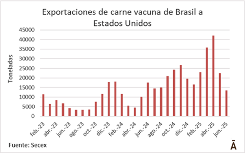 Si se efectiviza el anuncio del presidente de Estados Unidos, Donald Trump, de aplicar un arancel adicional de 50% a los productos importados desde Brasil, será un cambio cualitativo relevante en el comercio internacional de carne vacuna.