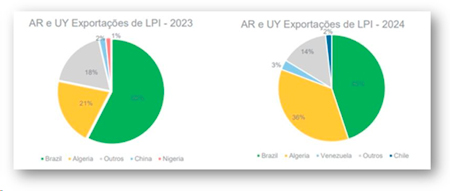 De esta manera, se puede observar que Argelia vuelve a aumentar sus compras de leche entera industrial en polvo (LPI) a países como Argentina y Uruguay, como lo muestra el siguiente gráfico, presentado por Vitor Vieira, Commodity Trader del Grupo Interfood, durante el 17º Foro Mercado MilkPoint. El gráfico ilustra que las exportaciones de LPI de los dos países sudamericanos a Argelia pasaron del 21% en 2023 al 36% en el primer semestre de 2024.