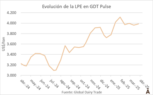 La subasta 76 de Global Dairy Trade (GDT) Pulse, la primera del mes de abril de 2025 en este sistema, el mercado recuperó parte de las pérdidas de la venta anterior, tanto para la leche en polvo entera como descremada. Según los datos de GDT, las ventas de la leche en polvo entera (LPE) subieron 0,6% respecto a la venta previa, tanto regular como instantánea, mientras que la leche en polvo descremada (LPD), las subas fueron del 1,8%.