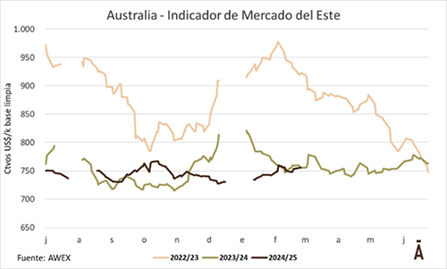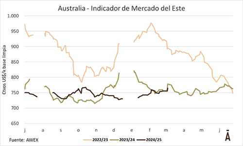 El mercado lanero australiano ha experimentado un nuevo incremento en el Indicador de Mercados del Este (IME), tanto en la moneda australiana, como en dólares estadounidenses. El indicador, según Australian Wool Exchange (AWEX), subió 30 centavos en la moneda australiana, posicionándose en los 12,25 dólares australianos por kilogramo base limpia, alcanzando su nivel más alto en casi dos años.