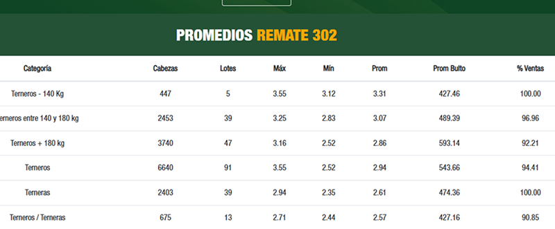 El consorcio Plaza Rural tuvo este martes 8 su primer día de actividad del remate 302 con un porcentaje de colocación por encima del 95%. La categoría más numerosa, los terneros (6.640 cabezas), hicieron un promedio de US$ 2,94 por kg (US$ 544 al bulto), mientras que las 2.403 terneras hicieron US$ 2,61 por kg de promedio con 100% de ventas.
